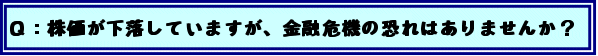 | A | : まず、いろいろしっかりと議論しなければいけないのは、「何月危機」とかという言葉がよく使われるわけですけれども、基本的に金融に対する、例えば資産査定が不十分ではないか、自己資本が不足ではないかと、そういった懸念があって株価が下がって来ているような状況、これは正に金融危機ないしはその兆候だと思いますけれども、そういう状況と今の状況は全く違うということをやはりきちっと認識しないと、対応策を誤ると思います。今は、「3月危機」というふうに言いますが、戦争を懸念した世界的な株安がこの3月に起こっているということになるわけですね。世界的な株安の圧力が増えているにもかかわらず、むしろ金融システムは健全に機能していると。そこが、やはり以前に言われていた金融危機と全く違う点だということは、これはぜひ皆さんにも国民の皆さんにもご理解いただきたいと思います。 基本的には、日本の銀行というのは、例えばですけれども、資金調達が困難になるとか預金が流出するとか、そういう兆候はもう全くないわけですし、そういうことを誰も現時点では考えていないと私は思います。株価の動向に関しては、いろいろな要因が働きますから、非常に注意して見ていかなければいけないということは間違いありませんけれども、その金融危機とかというその「危機」という言葉が、非常にいろいろな意味で混同されて使われるのは、これは政策判断を誤る非常に大きな問題を残すと思います。 もちろん私は、金融担当大臣に就任した時に、日本の金融システムには問題がある、病んでいるということをはっきり申し上げました。それに対応するために「金融再生プログラム」を作って、それに対して金融機関が動き始めた。その日本の金融が抱える問題が完治したなどとは私も思っておりませんが、しかしこの半年で非常に明らかに良い方に行っていると、これはもう私は申し上げてよいのではないかと思います。そこに、今、戦争を懸念した世界的な株安が起こっているということですから、これはこれでもちろんしっかりと注意して見ていかなければいけませんけれども、かといって、日本の今までの「金融再生プログラム」に基づく政策、これはやはりしっかりと続けなければいけないわけですから、そこは非常に困難な外的なショックが出て来ていることは確かでありますけれども、しかし我々がやって来ていることというのは、方向としては正しいと思っておりますし、これはぜひしっかりと続けなければいけないと思っています。 |