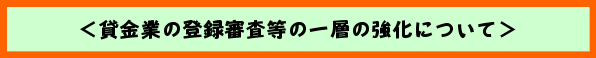 法令遵守の意思なく貸金業登録を行うような悪質な業者の排除に資するため、金融庁では、平成15年4月1日を目処に、登録(新規登録及び登録換え)申請時の審査等の一層の強化を図るよう、各財務局に指示を行うとともに、都道府県に対して助言、勧告を行いました。