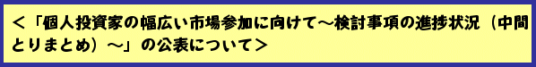 「個人投資家の幅広い市場参加に向けて」(〜検討事項の進捗状況(中間とりまとめ)〜)に盛り込まれた項目 |