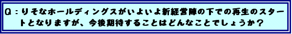 :正に資本を注入して、その十分な資本基盤の上に立って、やはり非常に思い切った経営改革が必要だと思います。その体制がスタートするということで、新しい経営者、経営陣には思う存分その力を発揮してもらいたい。それが今回の政策を効果あるものにする、やはり一番重要なポイントであると思っています。 我々としては、しっかりと検査・監督をしていく立場に引き続きありますけれども、そのもとで経営陣の力を思う存分発揮してもらいたいと思っています。 |