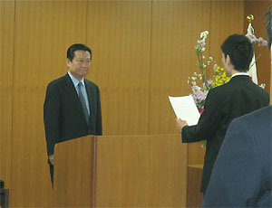 金融庁は、我が国の社会経済活動の根幹を支える金融の円滑を図ることを使命とする省庁です。現在、我が国の金融システムを巡る局面は、バブル崩壊後の長く厳しい時期を経て、不良債権問題の正常化を達成し、活力ある金融システムの構築に向けた時代へと本格的に移行しつつあります。また、少子高齢化やグローバル化が進む中、国民一人当たりの所得の向上を目指す観点から、金融・資本市場の構造改革と活性化が求められています。こうした今後のわが国の社会経済の方向性を決める大きな変革の時期に入庁された皆さんには、新たな時代の金融行政の担い手として、立派に成長してくれることを期待しています。
