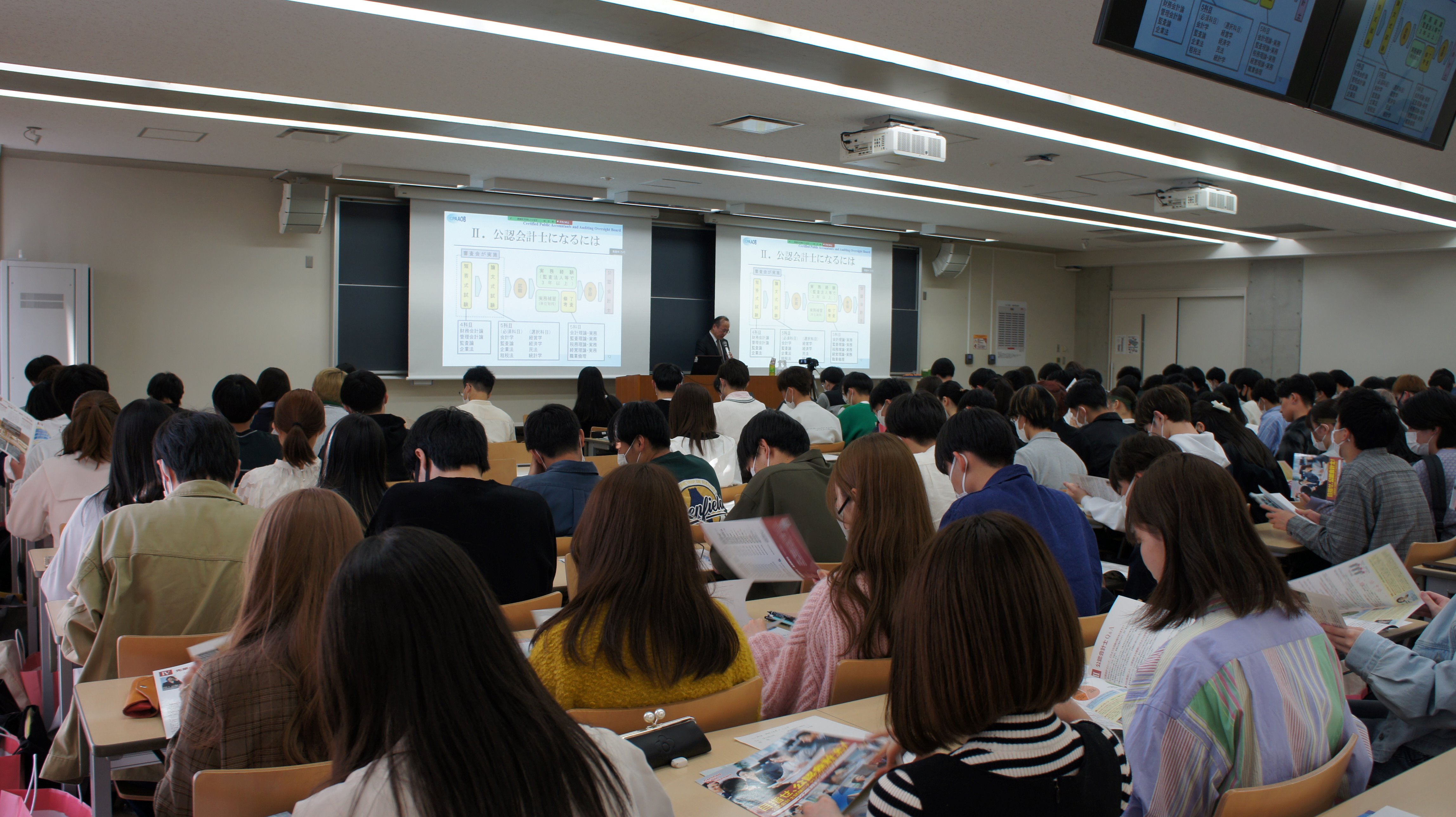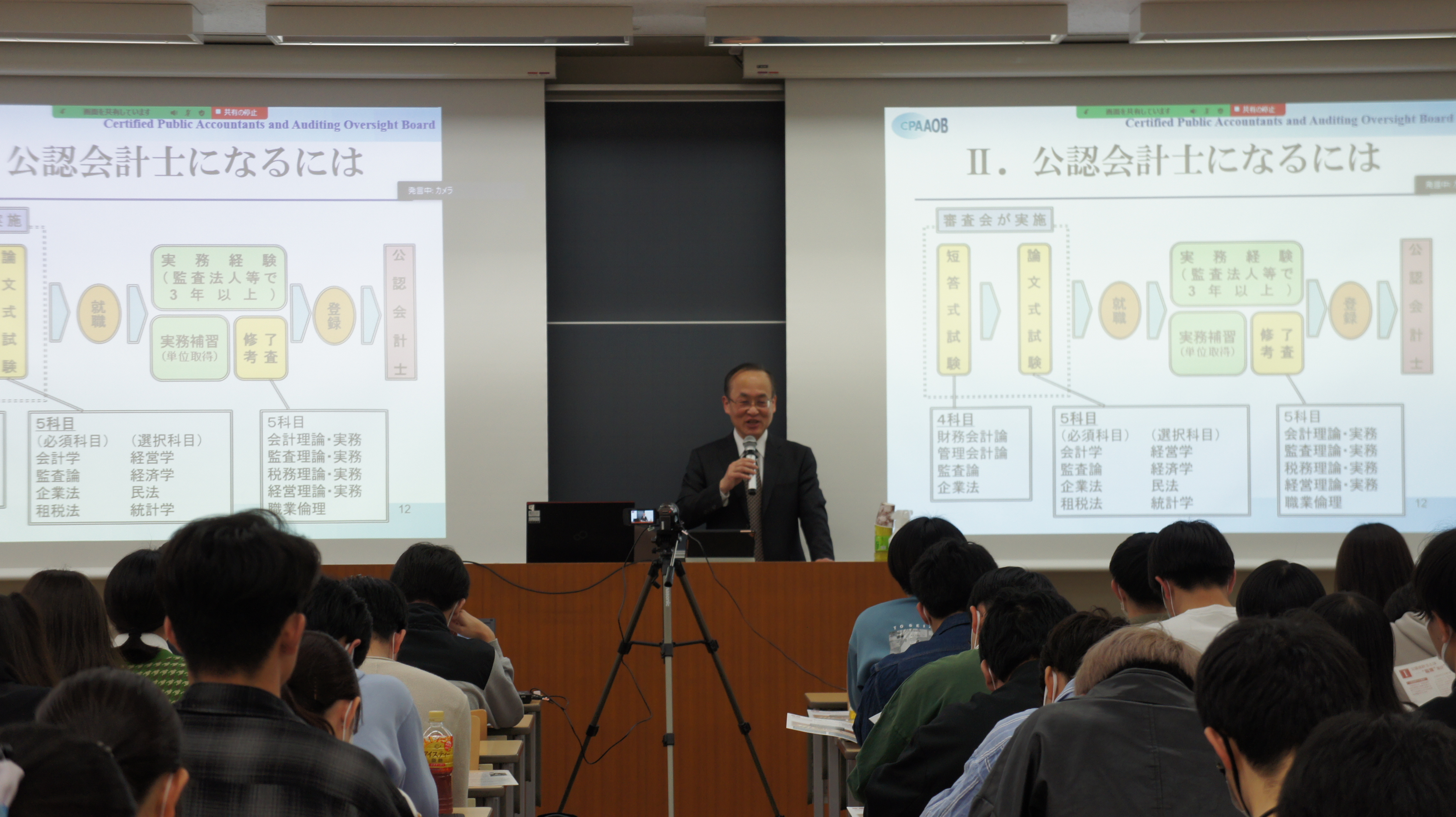 令和5年4月1日、日本大学において、松井会長が「拡大する公認会計士の役割」をテーマとして講演を行い、多数の学生の皆さまに御出席いただきました。