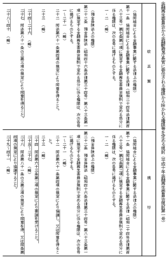 協金法の改正による権限委任(金融再生委員会→金融監督庁長官)規定の項番号の変更(協金法第第7条第2項→第7条第1項)に伴う改正(第11条関係)