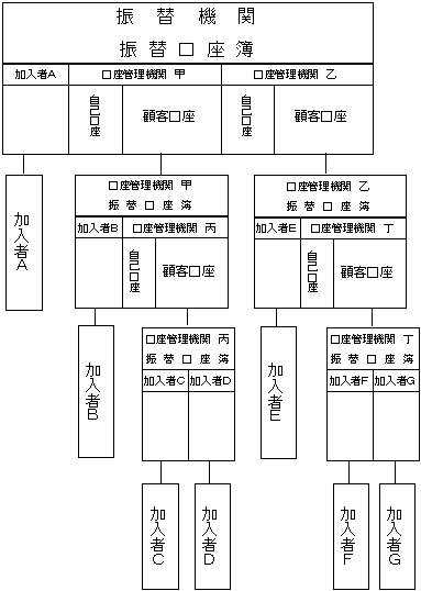 .法律の目的 この法律の目的は、内外の金融情勢の変化に即応し、諸外国との調和を図りつつ、より安全で効率性の高い証券決済制度等を構築していく必要性にかんがみ、社債、国債等について、券面を必要としない新たな振替制度の整備、より効率的な清算を可能とする清算機関制度の整備を行う等、決済の迅速化、確実化をはじめとする証券市場の整備のため、所要の措置を講ずることにある。具体的には、○券面を必要としない統一的な証券決済法制の対象をCPから社債、国債等へと拡大、○単層構造の仕組みを発展させ、一般投資家が証券会社・銀行等に口座を開設することを可能とする多層構造の振替決済制度の創設、○安全かつ効率的な決済を行うためにより有効な清算を可能とするための制度整備等を旨としている。 |