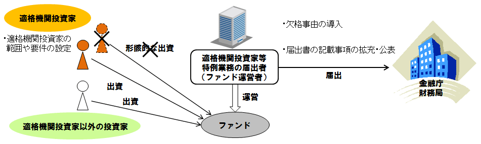 実態を伴わない適格機関投資家排除のため、適格機関投資家の範囲や要件を設定【第63条第1項】