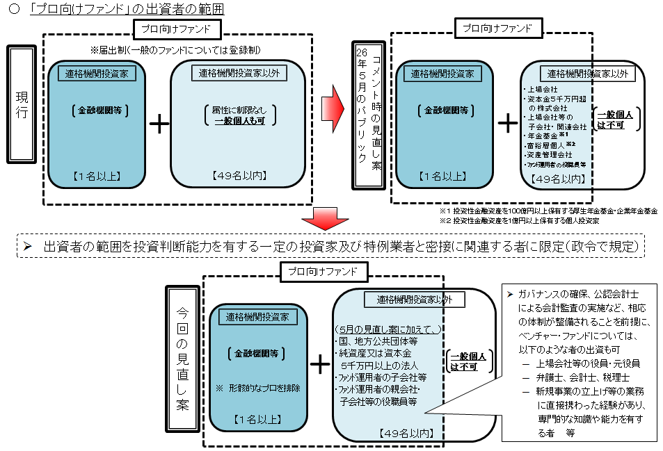 ※1 政令・内閣府令案及び監督指針案の内容は、平成27年1月28日付「金融審議会 投資運用等に関するワーキング・グループ 報告 ~投資家の保護及び成長資金の円滑な供給を確保するためのプロ向けファンドをめぐる制度のあり方~」(「ワーキング・グループ報告書」)を踏まえています。