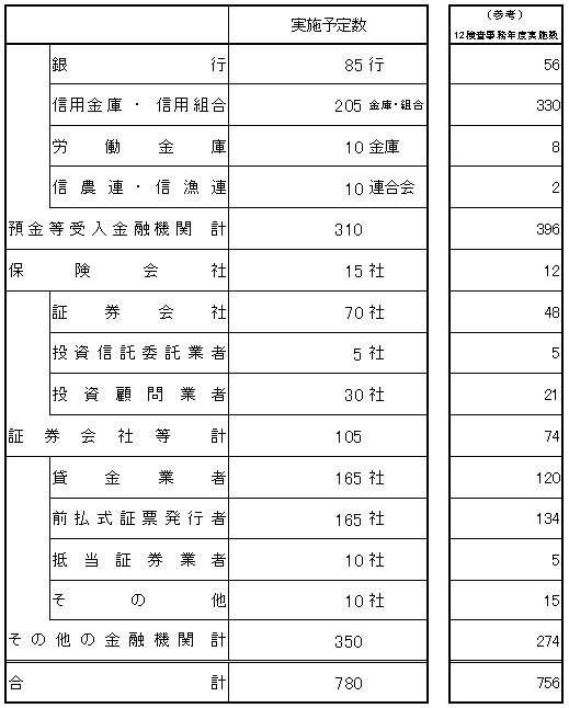 | (注2) | 上記検査実施予定数は、当初計画として設定しているものであり、金融機関を取り巻く現下の厳しい環境下において適時の実態把握に的確に対応するため、弾力的な運用を行うこととしていることから、実施予定数は変動することがあり得る。 |