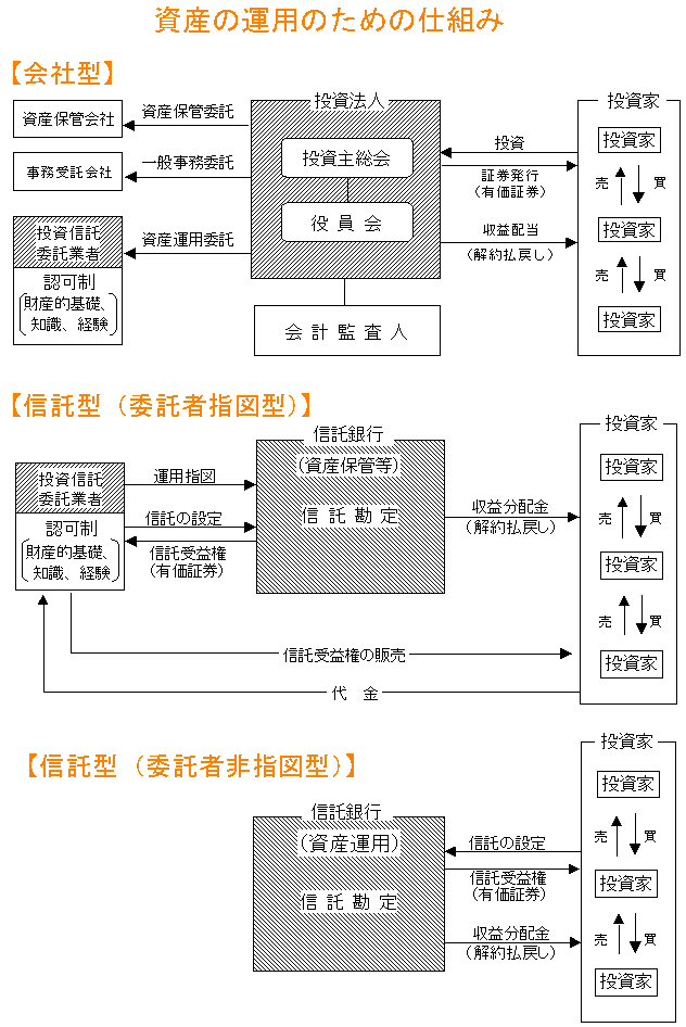 | 主として有価証券に運用するための仕組みを定めた証券投資信託法を改正し、不動産を含めた幅広い資産に投資運用できるよう規定を整備する。 これに伴い法律名を「投資信託及び投資法人に関する法律」に改める。 |