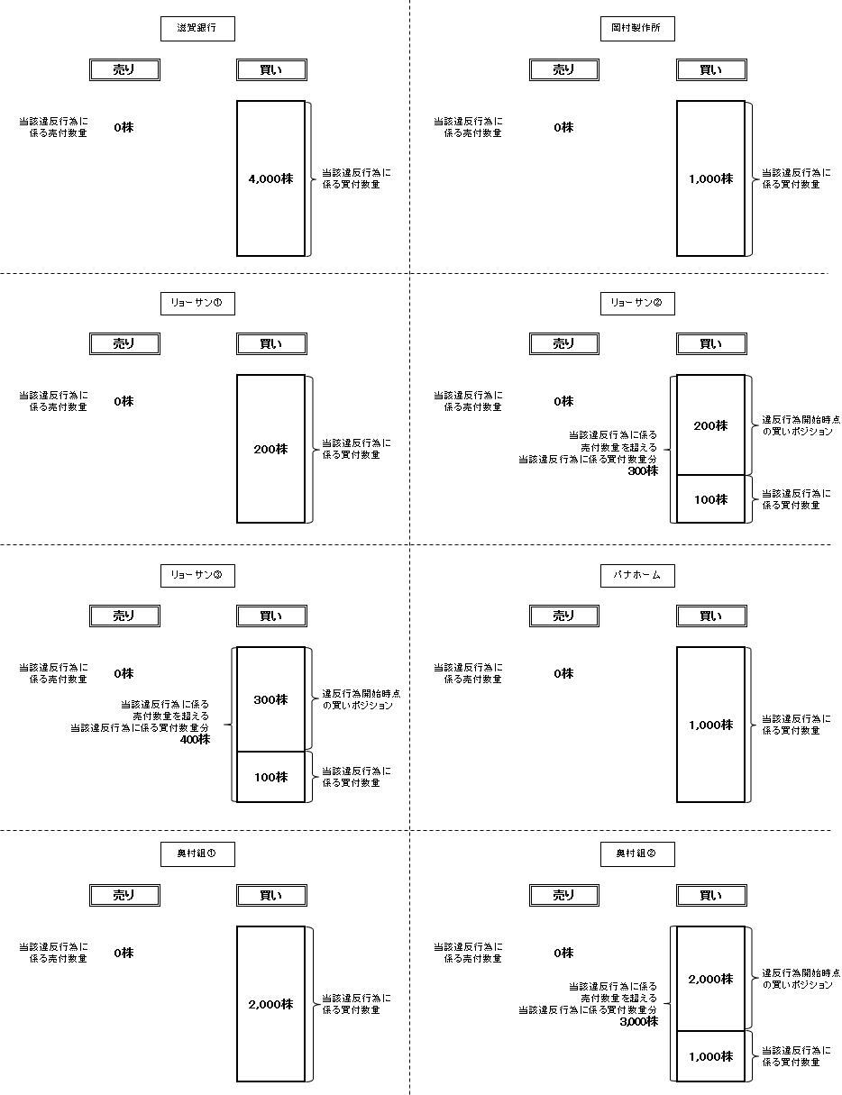 - (注1)売買対当数量:当該違反行為に係る有価証券の売付数量と買付数量のうち、いずれか少ない数量をいう。