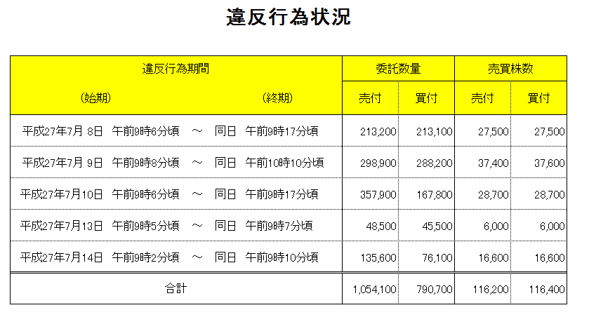 当該違反行為に係る自己の計算による有価証券の売付け等の数量は、27,500株であり、当該違反行為に係る自己の計算による有価証券の買付け等の数量も27,500株であることから、